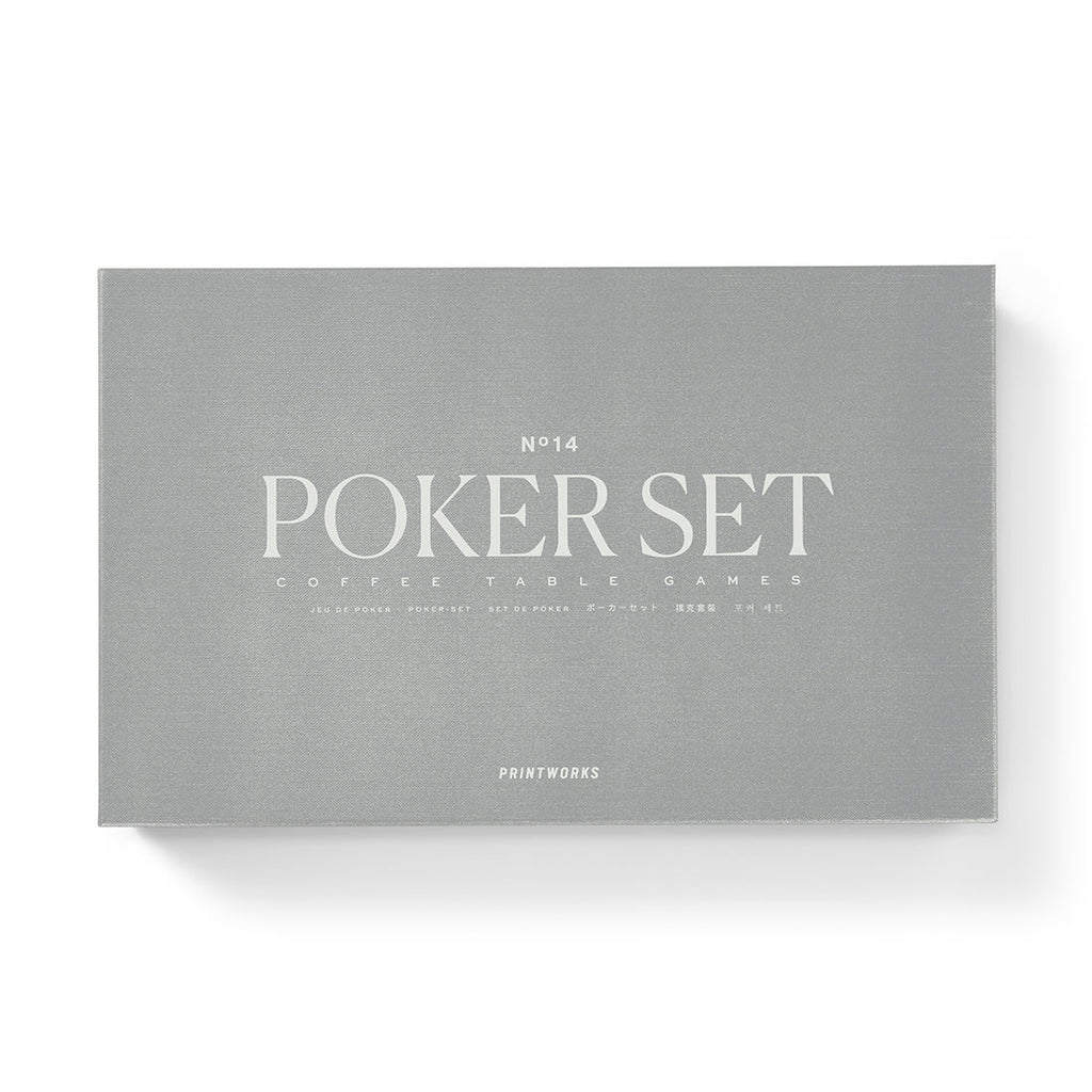 Discover the reimagined Poker Set game set by Printworks, where design meets excitement. This set includes everything you need for a thrilling game, poker chips and professional-grade playing cards. Beautifully designed components with a minimalist palette and distinct graphics mean this Poker Set looks good when not being used and is just on display.