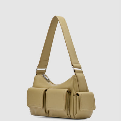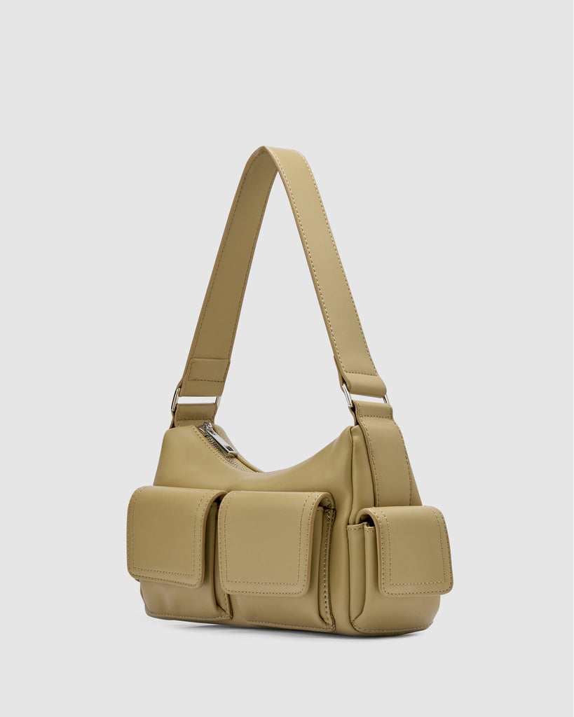 The Rae Mini Pocket Bag in Harvest by Brie Leon is an absolute essential, it explores form and function with a utilitarian edge. External pockets protrude against a minimal silhouette, creating a dimensional statement worn on the shoulder.