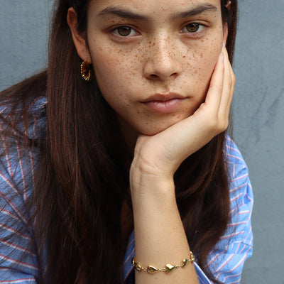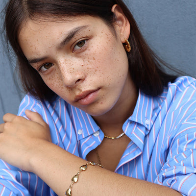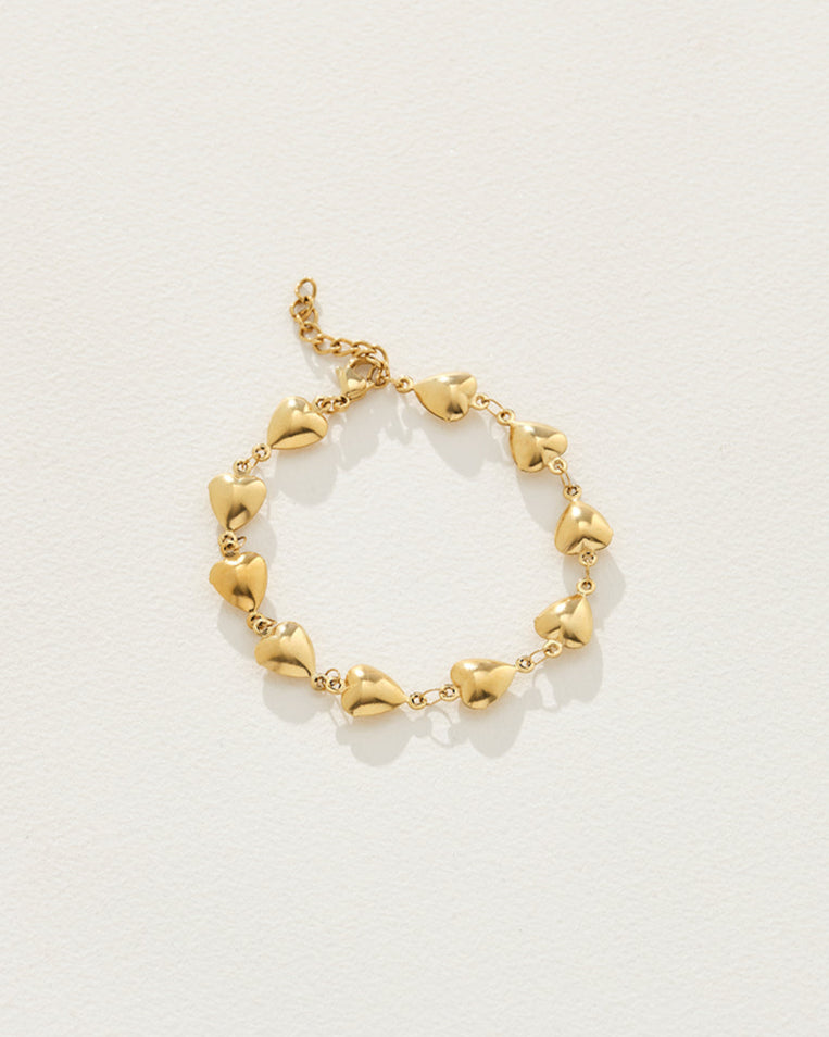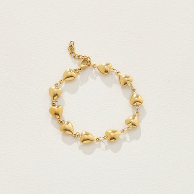 Delicate, dreamy and full of charm, the Celeste Bracelet by Reliquia is designed to capture hearts. Featuring a series of polished gold heart charms linked together in perfect harmony, this bracelet adds a soft, romantic touch to any look. Lightweight and with an adjustable fit, it's made for everyday wear with a golden glow.
