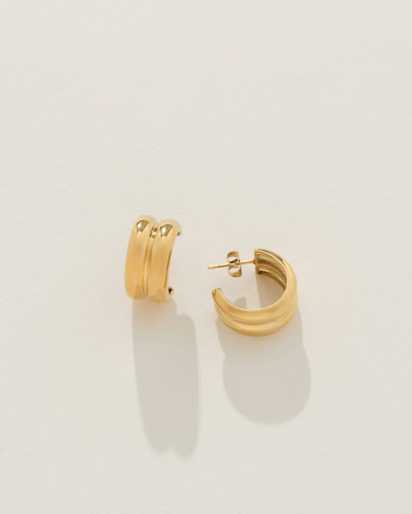 A dance of light and shadow, the Rhea Hoops by Reliquia break free from the traditional hoop design with their captivating structure. With their double-tube design, these earrings create a look that's both dynamic and effortlessly chic. Bold in their originality yet perfect for daily wear.