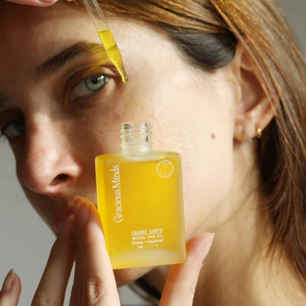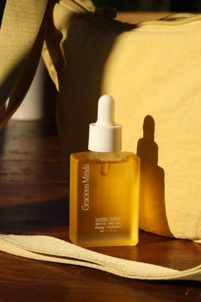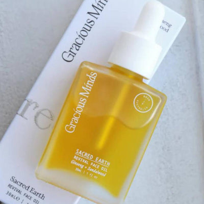 The Revival Face Oil by Gracious Minds is infused with brightening turmeric root, reparative ginseng and sacred, anti-inflammatory Australian native sandalwood seed oil which all target dullness, uneven skin tone and visibly calms redness and irritation. A lightweight face oil for the day, enriched with essential fatty acids, rare Australian native botanicals, Vitamin C and potent antioxidants. Formulated for sensitive skin.