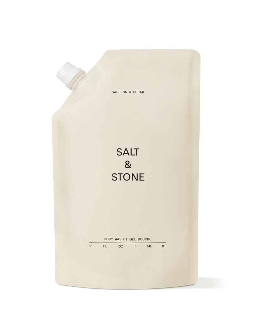 Body Wash Refill in Saffron & Cedar scent by California-based natural skincare brand, Salt & Stone is a multi-benefit, refreshing gel body cleanser with antioxidants, ocean botanicals and naturally hydrating ingredients. Soften and soothe while cleansing to help restore the drying effects of outdoor activity, wind, sun and sea.