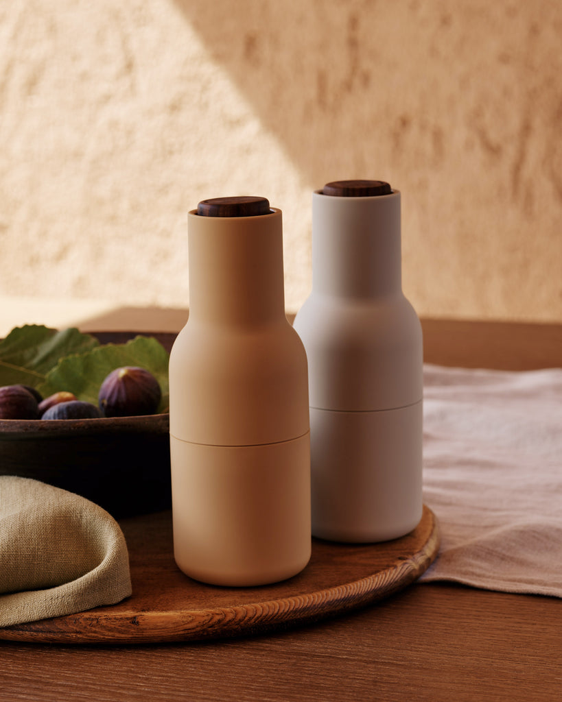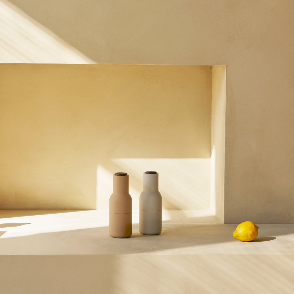 The Audo Salt & Pepper Grinders by Norm Architects / Menu are a two-piece set, each fitted with a powerful ceramic mill that makes light work of grinding a wide range of spices. Shaped as bottles that sit comfortably in the hand, the Barley set is a warm and calming neutral that works within any kitchen design scheme.