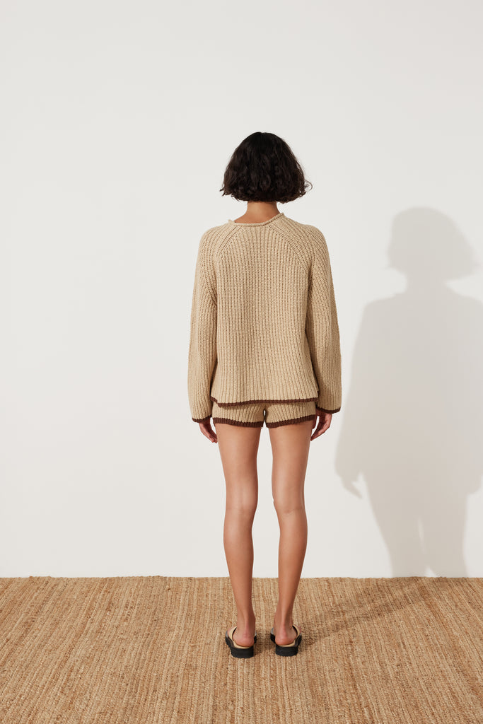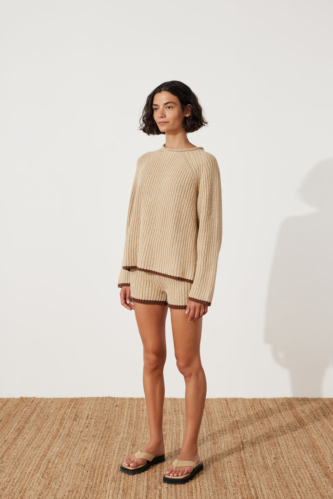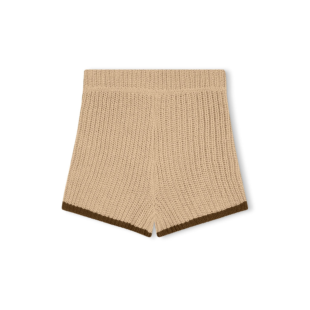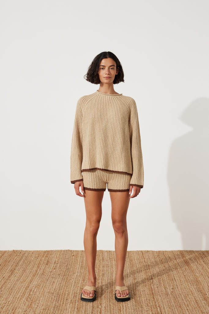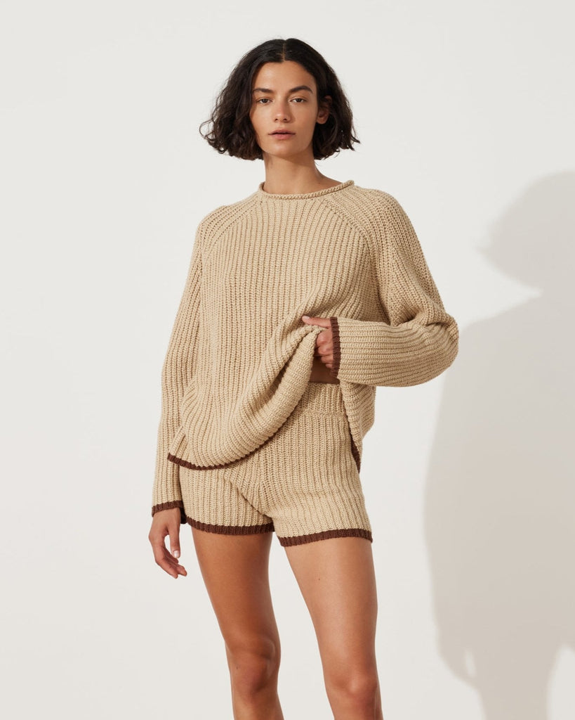 The Sand Contrast Rib Knit Shorts by Zulu & Zephyr features a mid-high waisted fit, relaxed leg opening, and thick elasticated waistband in a soft touch knit fabrication. Pair with the Sand Contrast Rib Knit Jumper for a coordinated look.