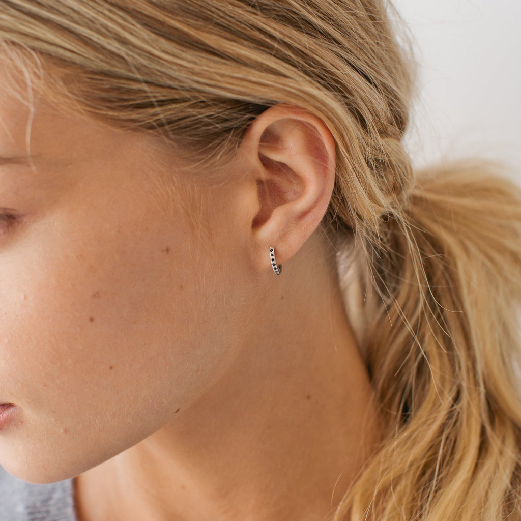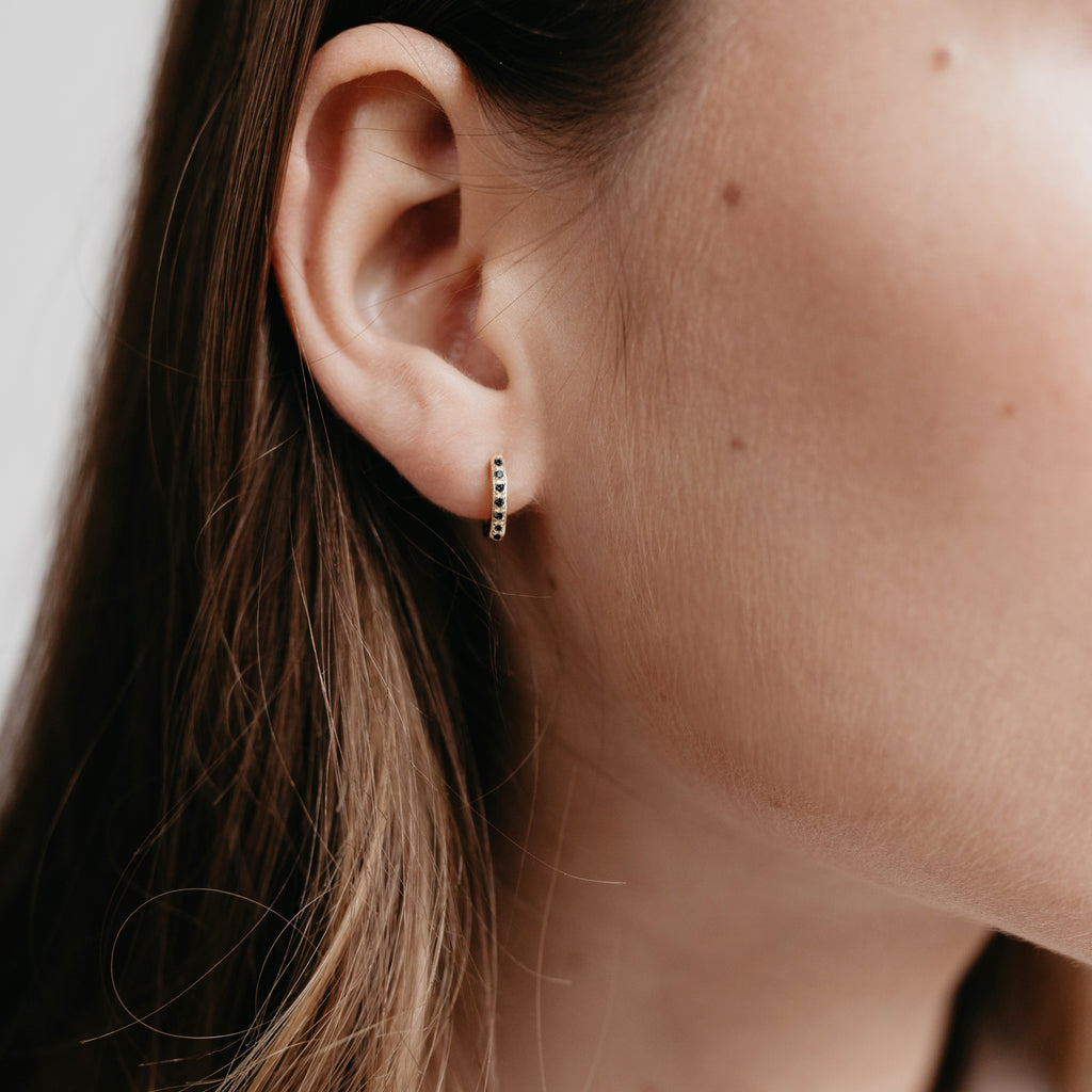 Delicate little huggies earrings, made up of mini zircons by New Zealand lifestyle goods brand, Sophie. Super sweet on their own, even better layered with other earrings.