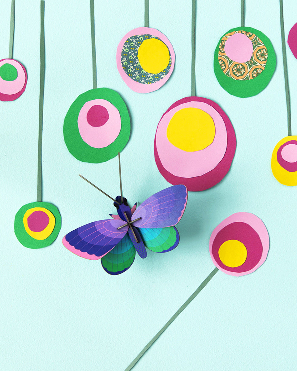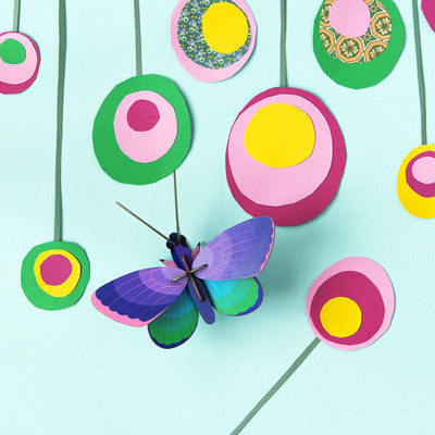 This 3D Blue Copper Butterfly Wall Art won't flutter away like the real thing, but it is sure to add colour to your children's walls. Printed on recycled cardboard using vegetable ink with bright graphic patterns, these pieces are fun to assemble and offer an engaging way to discover amazing insects.