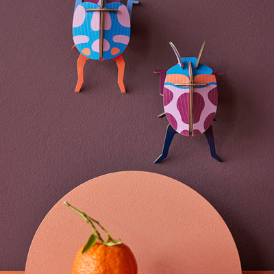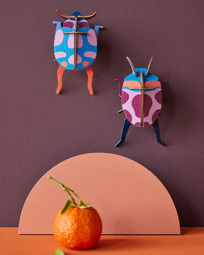 Add a set of colourful creatures to your wall with these 3D Coccinelle Couple Beetles. As small as they may be, insects are of great importance for the earth’s vitality - now they can also tell their story in your home. Printed on recycled cardboard using vegetable ink with bright graphic patterns, these pieces are fun to assemble and add a little fun to both your home and the world.