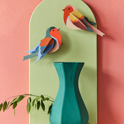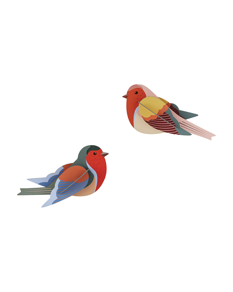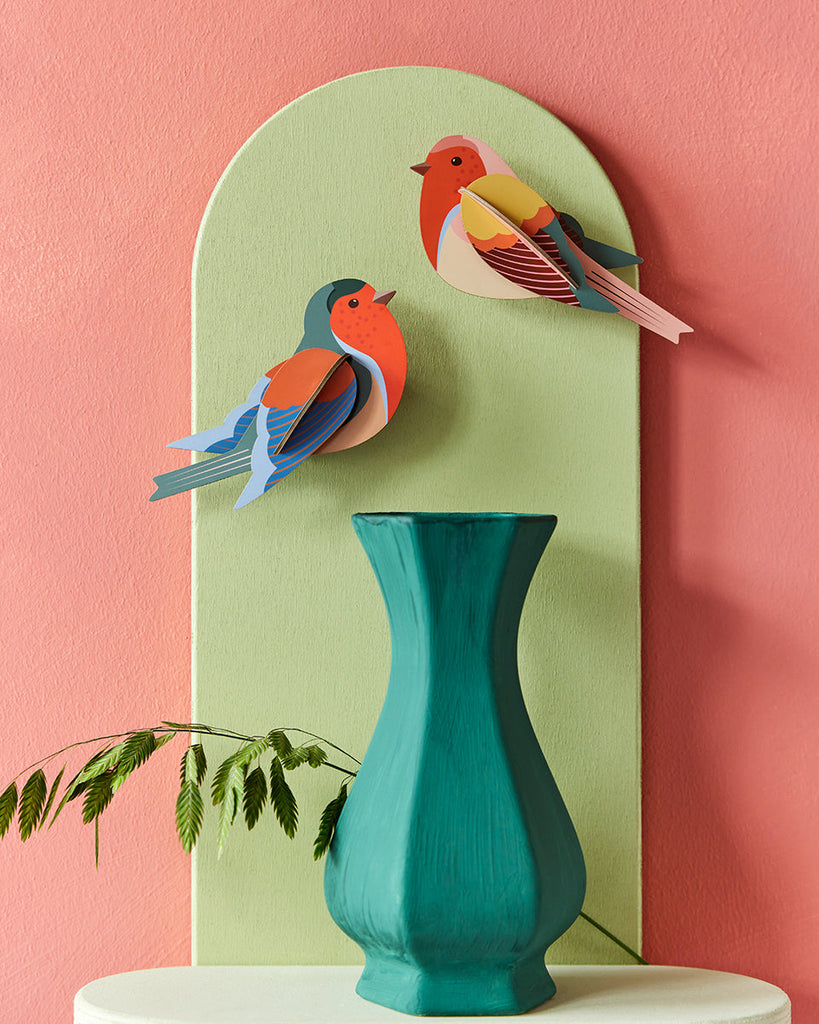 This 3D set of Robins Wall Art won't fly away like the real things, but they are sure to add colour to your children's walls. Printed on recycled cardboard using vegetable ink with bright graphic patterns, these pieces are fun to assemble and offer an engaging way to discover amazing bird life.