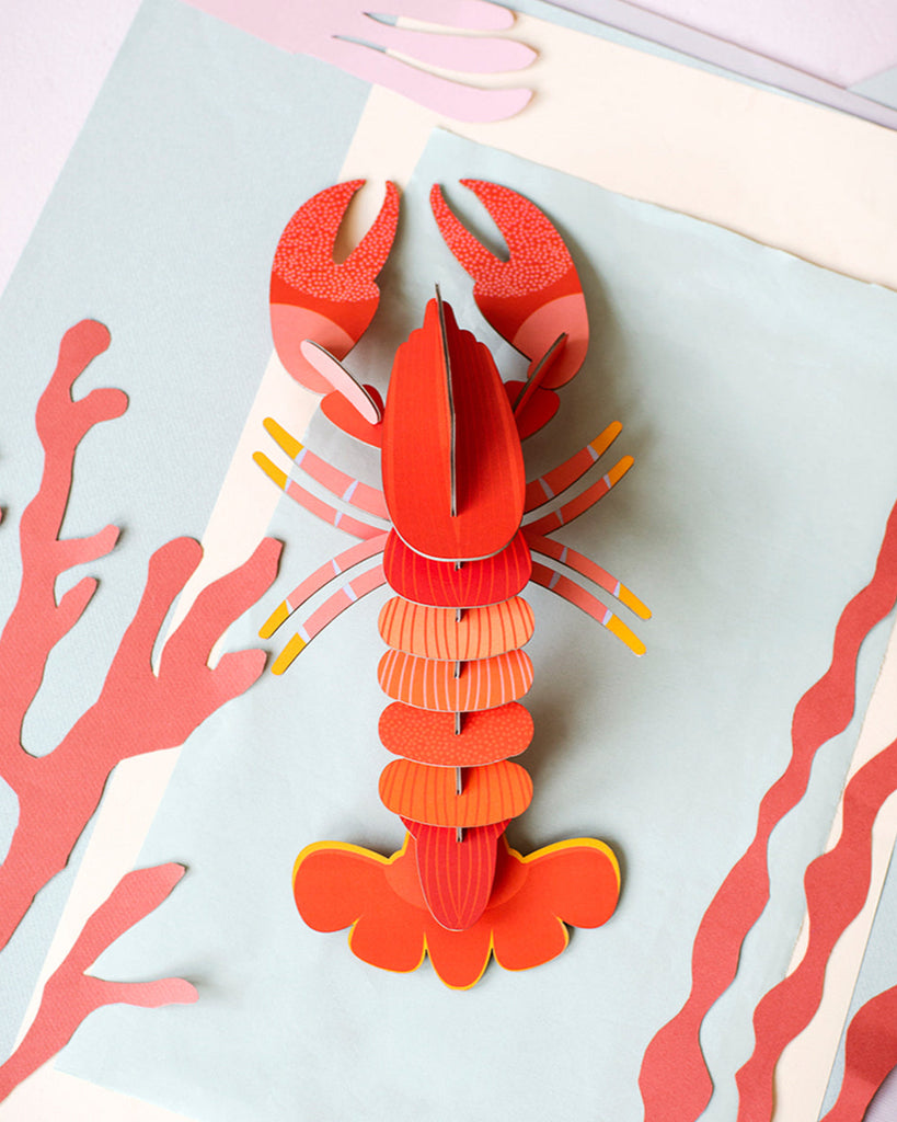 Put on your diving mask and plunge into building this 3D Lobster Wall Art, crafted to spark imagination, encourage curiosity and inspire a love for the ocean. Printed on recycled cardboard using vegetable ink with bright graphic patterns, these pieces are fun to assemble and offer an engaging way to discover amazing sea life and its importance to our planet.