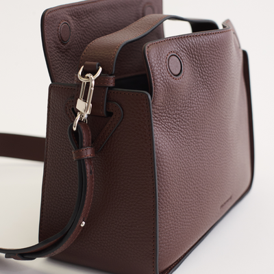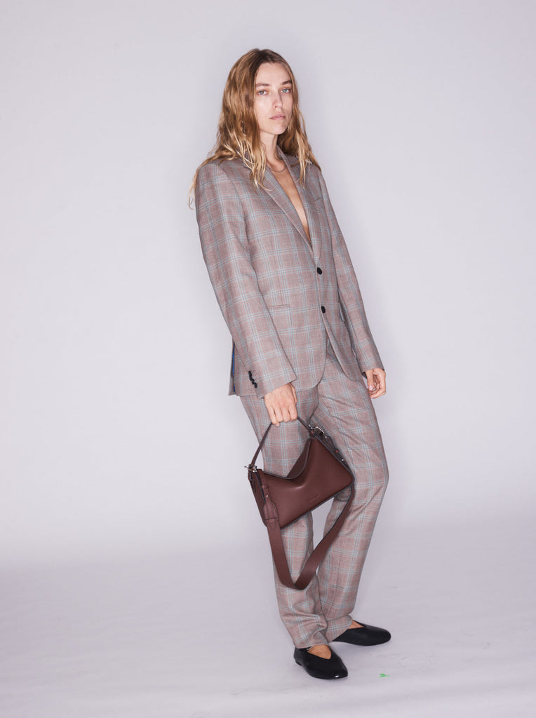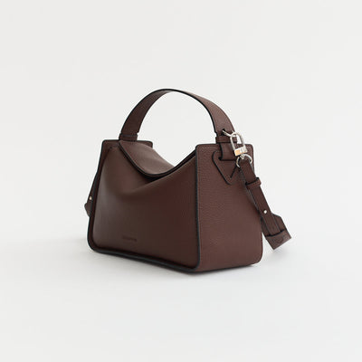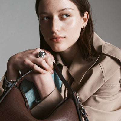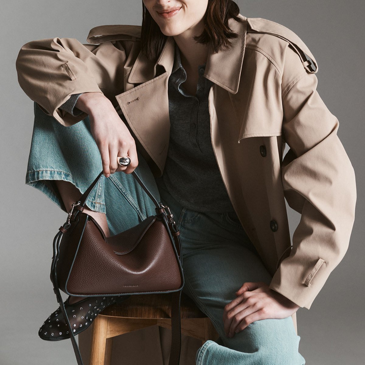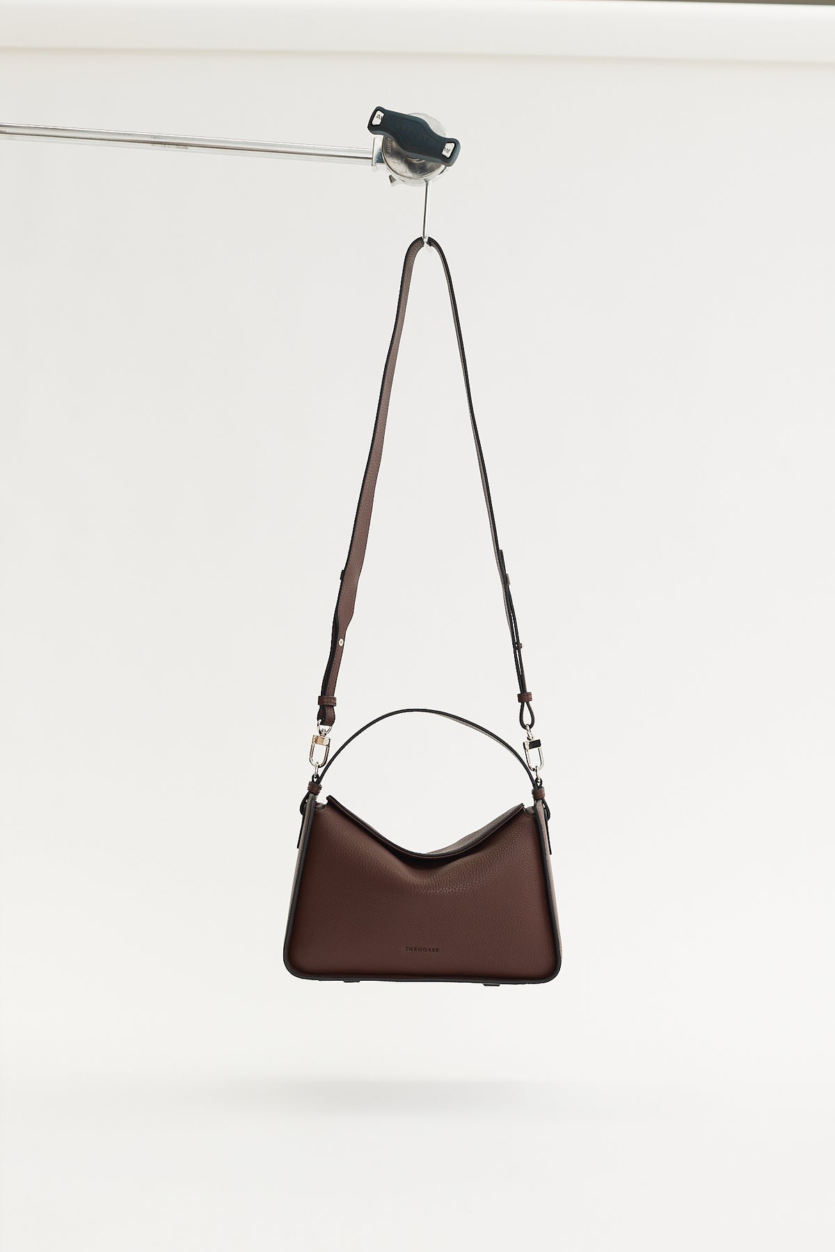 The Clementine Bag in Coffee by The Horse is the epitome of understatement. Made in soft, textured leather, the Clementine has hand-painted trims, including an adjustable wide strap to ensure it rests comfortably on your shoulder. There's plenty of space inside for your daily essentials. It has a flat base with protective feet and a curved top handle to sit unhindered on the shoulder or arm.