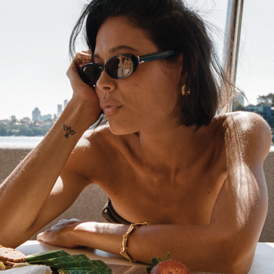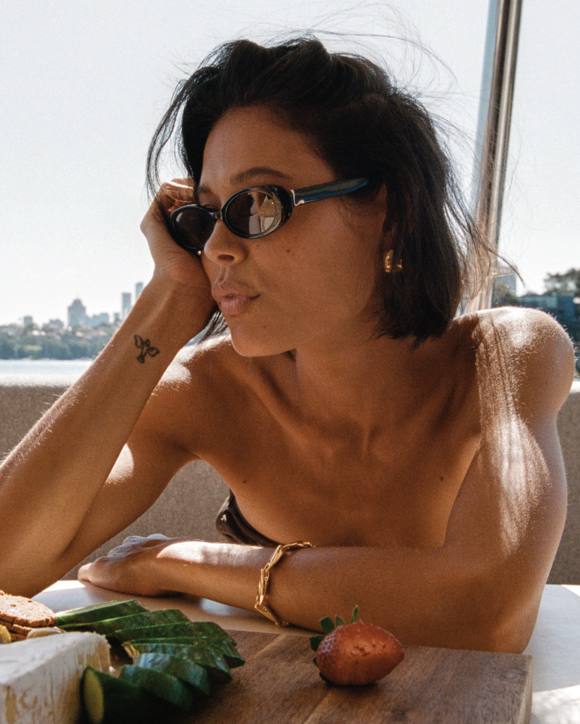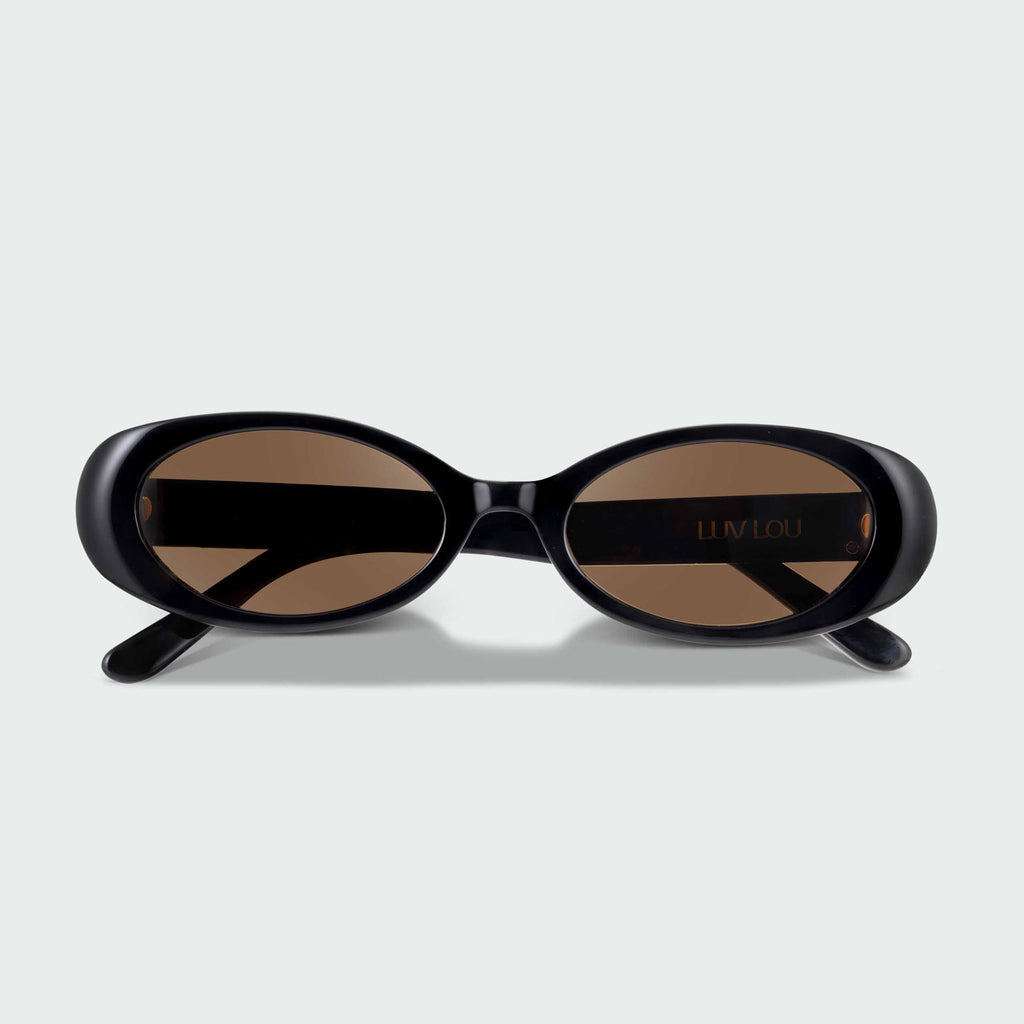 The Morgan Sunglasses in Black by Luv Lou is an ode to the 90's. A petite oval frame with signature gold detailing and thin arms, this style boasts quiet luxury. Handcrafted using a black bio-acetate with a polarized, category 3 smoke lens giving you 100% UV protection.