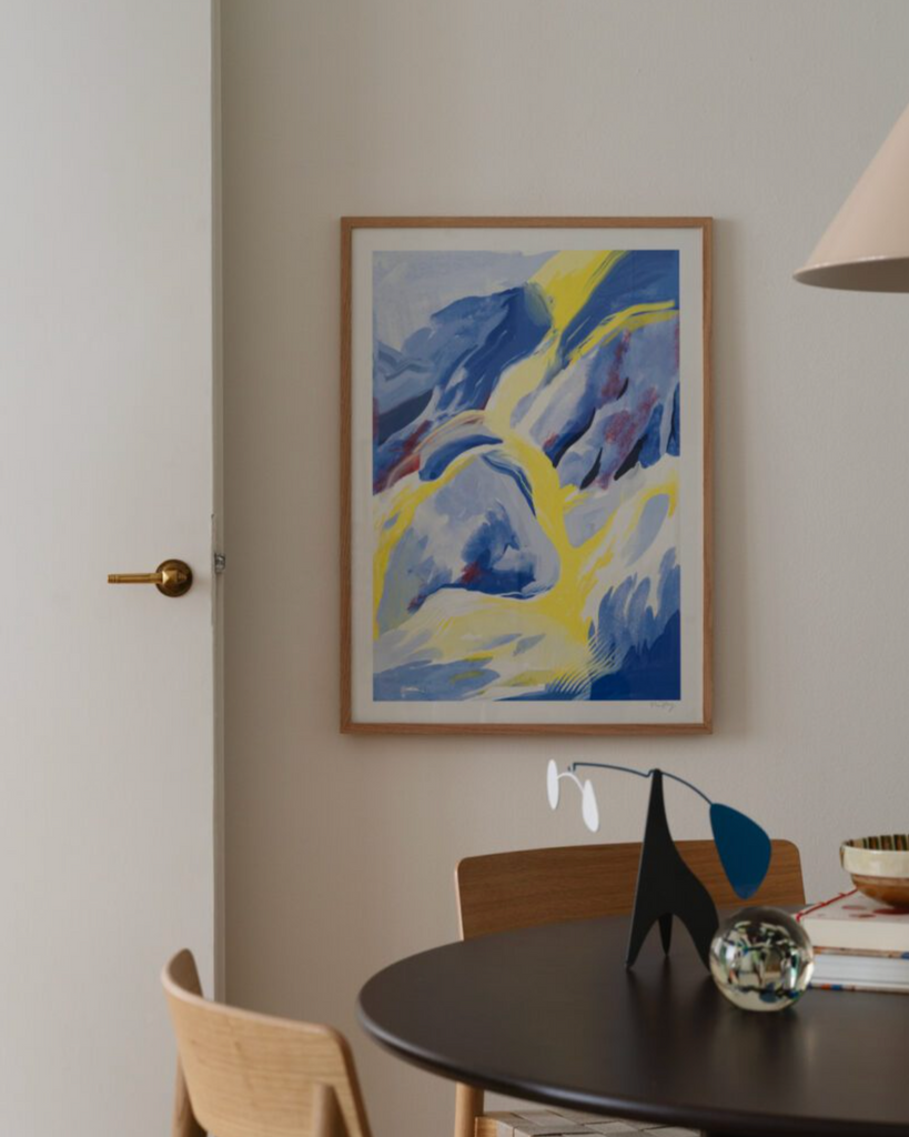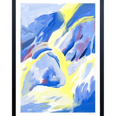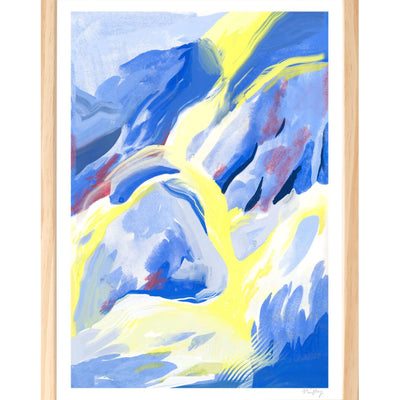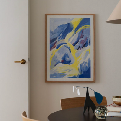 Blue Strokes fine art giclée print by artist Nina Dissing for The Poster Club, Denmark. Each brushstroke tells a story that transcends borders and beckons the eye to wander through a world of vibrant hues and dynamic textures.