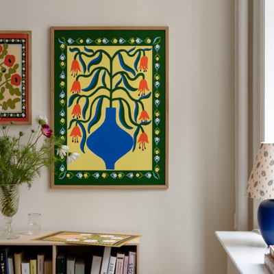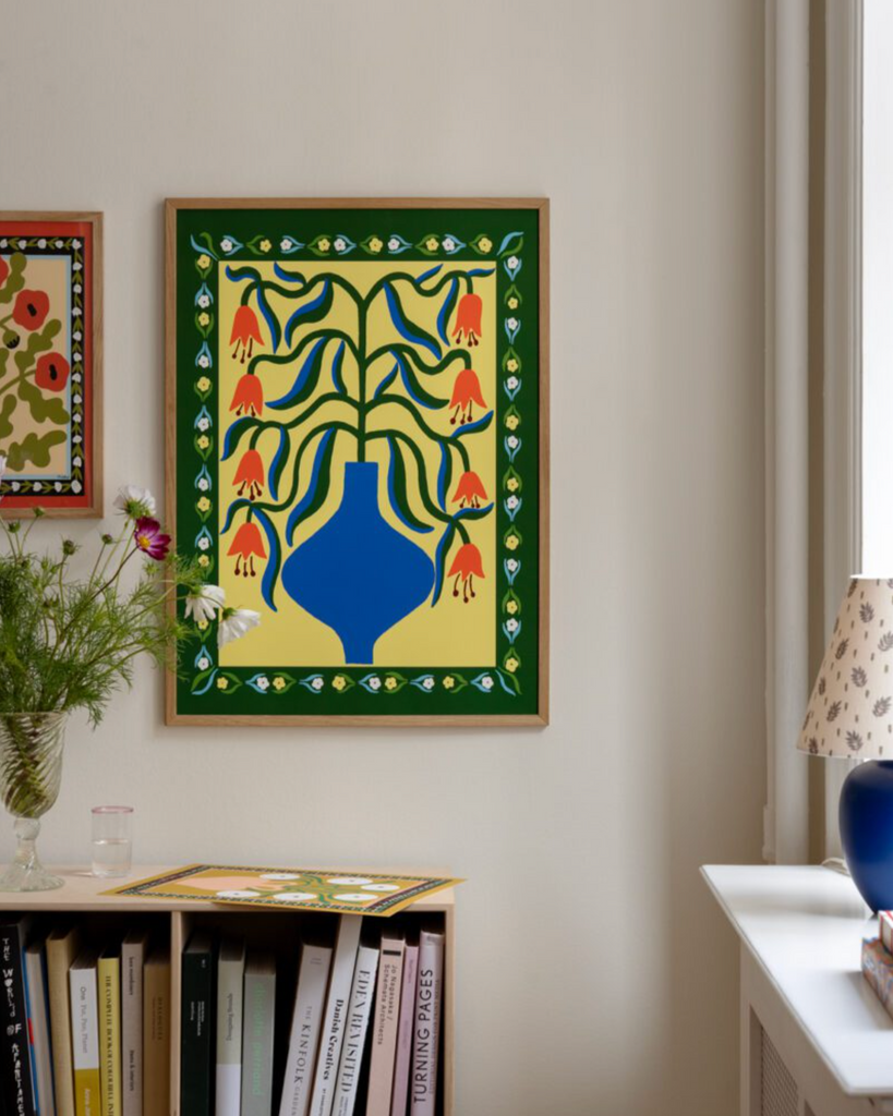Orange Fantasy fine art giclée print by artist Madelen Möllard for The Poster Club, Denmark. Madelen, based in Stockholm, crafts vibrant, figurative art, drawing inspiration from diverse sources for her bold, colourful and dreamy creations.