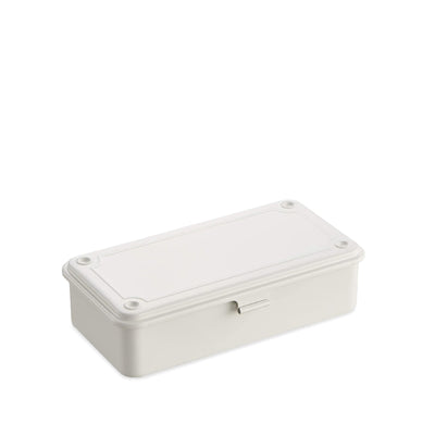 The Mini T-190 Trunk Toolbox in White by TOYO Steel is a versatile & stackable storage box, pressed from a single plate of steel resulting in a seamless and strong design. A perfect size to store your paint brushes, seed packets or everyday bits & bobs, its small size and the secure lid mean it is easily portable to take on adventures.