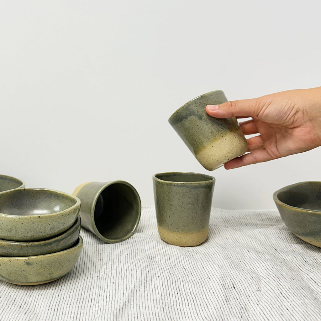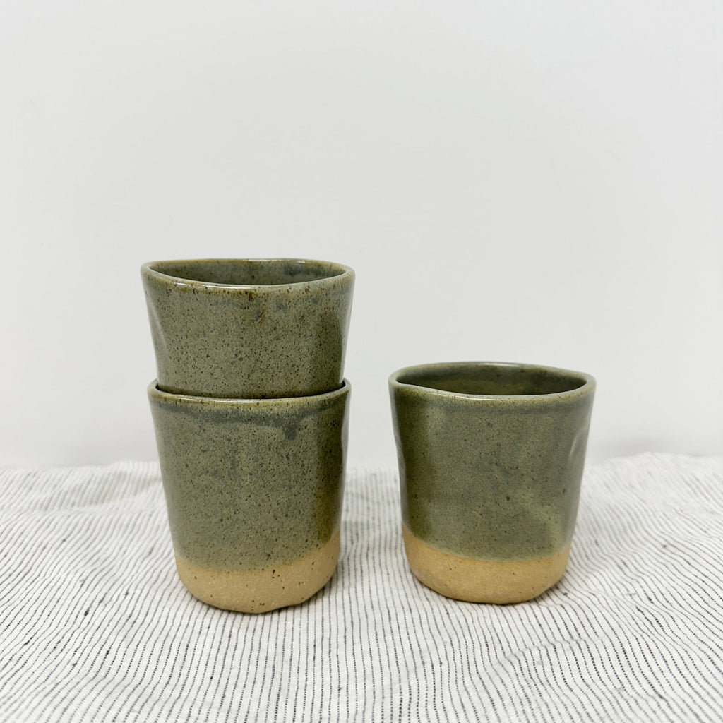 Tumbler in kelp, handmade in NZ by Lil Ceramics. Perfect for water, tea, coffee or as a wine tumbler.