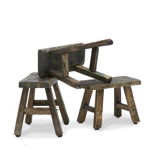 Small Vintage Footstool handcrafted from reclaimed Elm wood using traditional techniques.