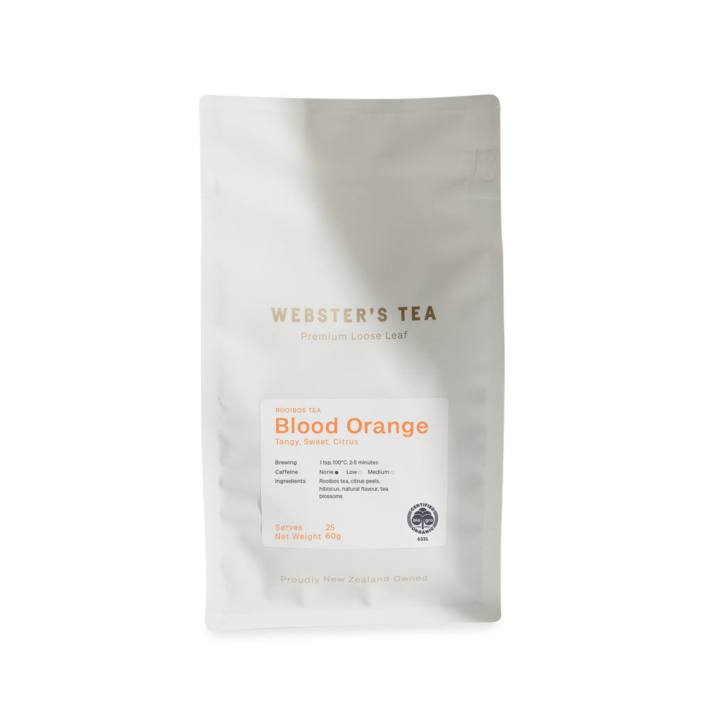 Organic loose-leaf Blood Orange tea by Tauranga-based tea makers, Webster's Tea.