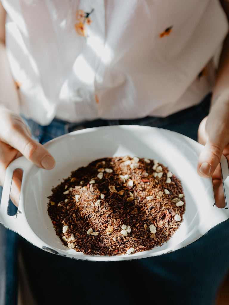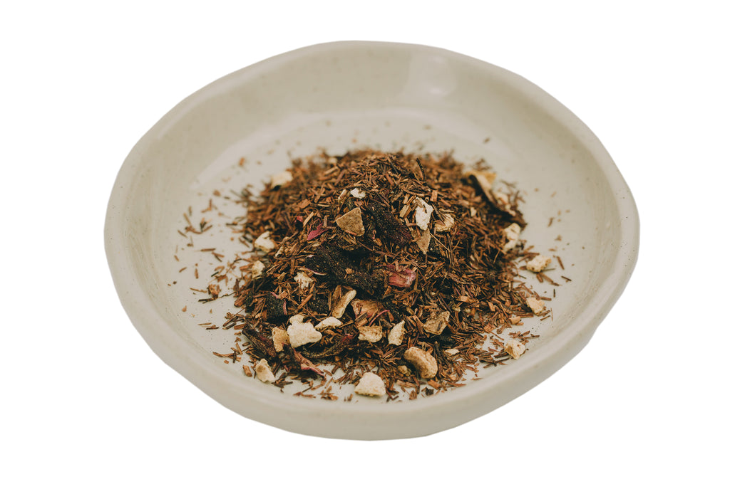Naturally sweet rooibos tea from the Western Cape of South Africa is combined with juicy blood orange peels and hibiscus. Whether you prefer it hot or over ice, this treat is soothing, refreshing and addictively tangy. Caffeine-free.