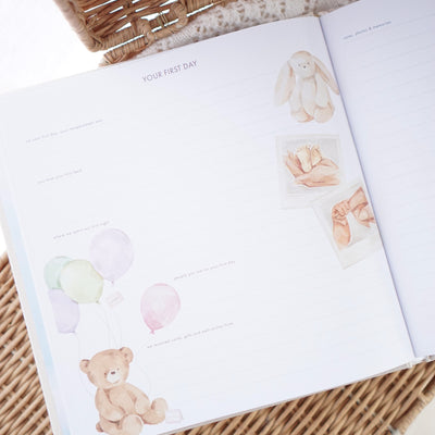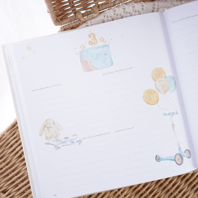 ‘Your First Years’ is a beautiful watercolour illustrated Baby Book by Forget Me Not Journals to guide you to record the first five years of your baby’s life.